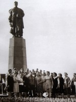 Первый секретарь Калужского ОК КПСС А. А. Кандрёнков, старейший оператор Обнинской АЭС М. Х. Ужвий, Маршал Победы Г. К. Жуков, лунный командир Ю. А. Гагарин и кинозвезда из Италии Джина Лоллобриджида. Калужская область, Обнинск, июнь 1966 года