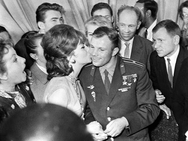 Звезды кино и космоса впервые целовались в Москве. Юрий Гагарин и Джина Лолобриджида на кинофестивале